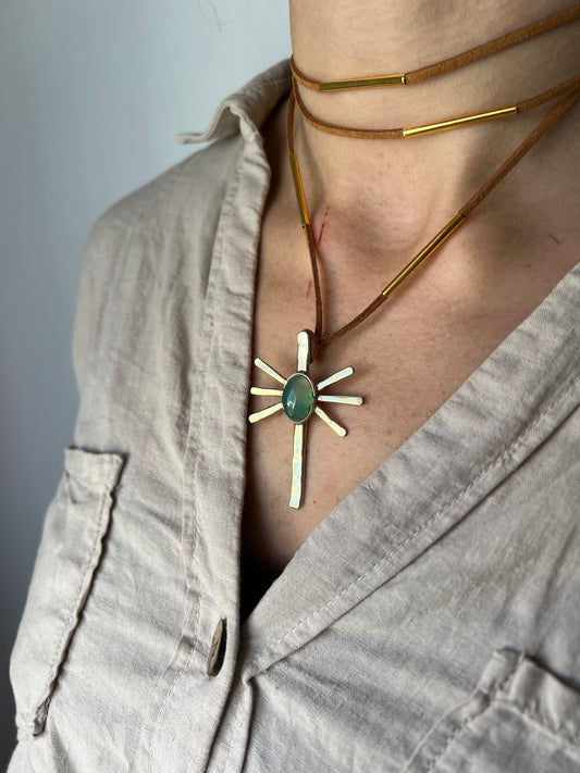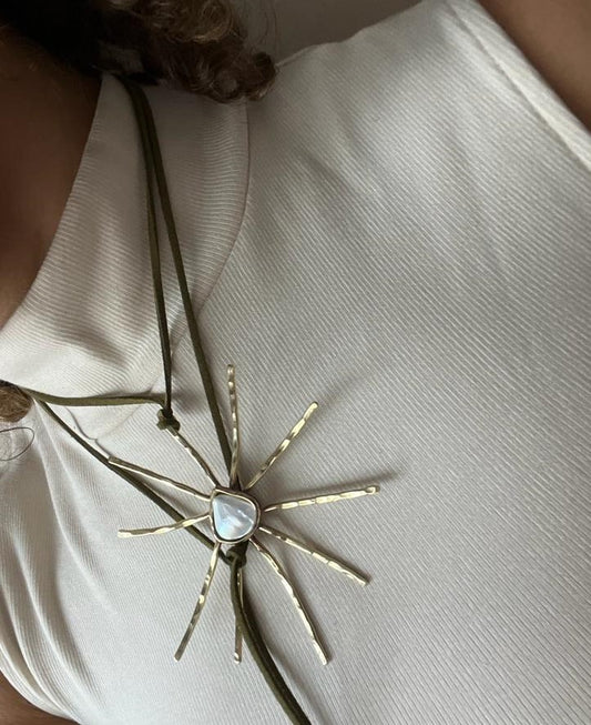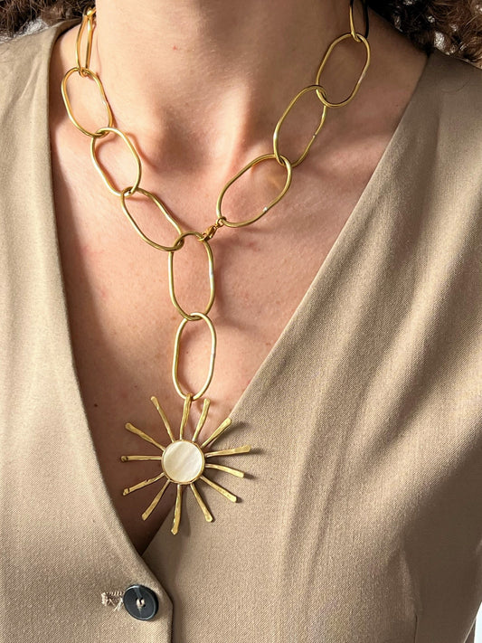 Sol nácar y cadena hecha a mano