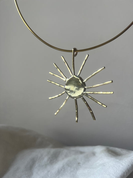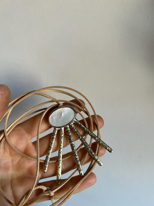 Collar sol con bronce labrado y nácar