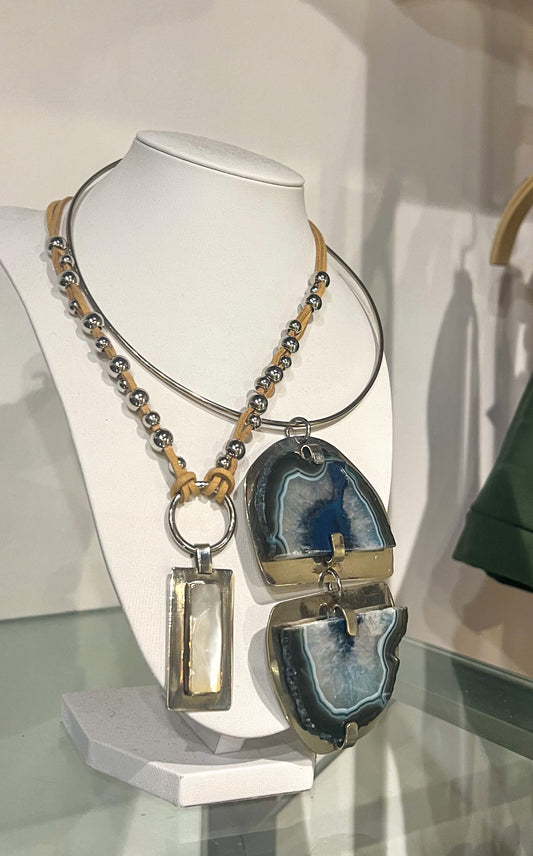 Gargantilla doble con ágata y nácar