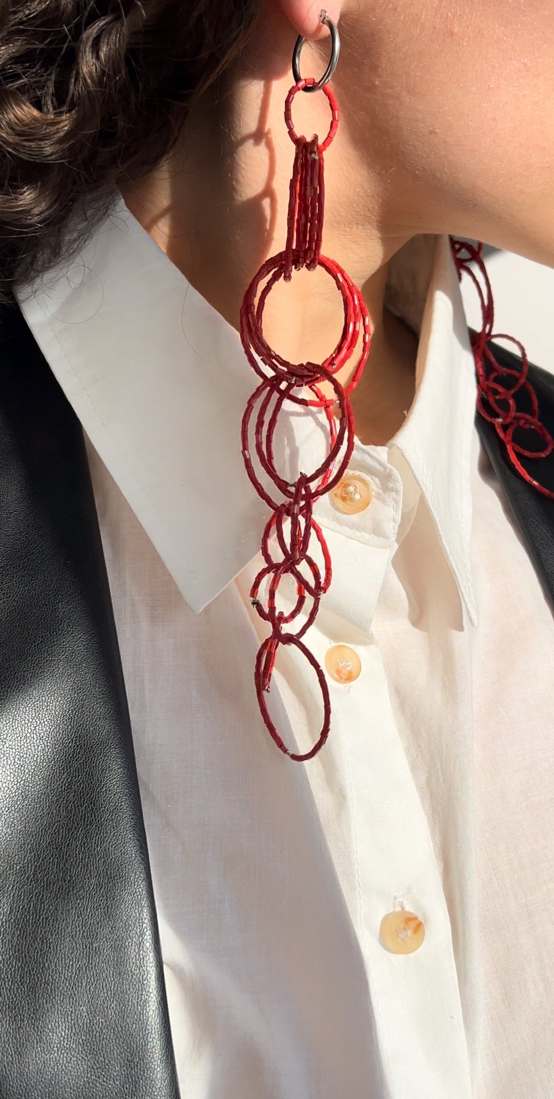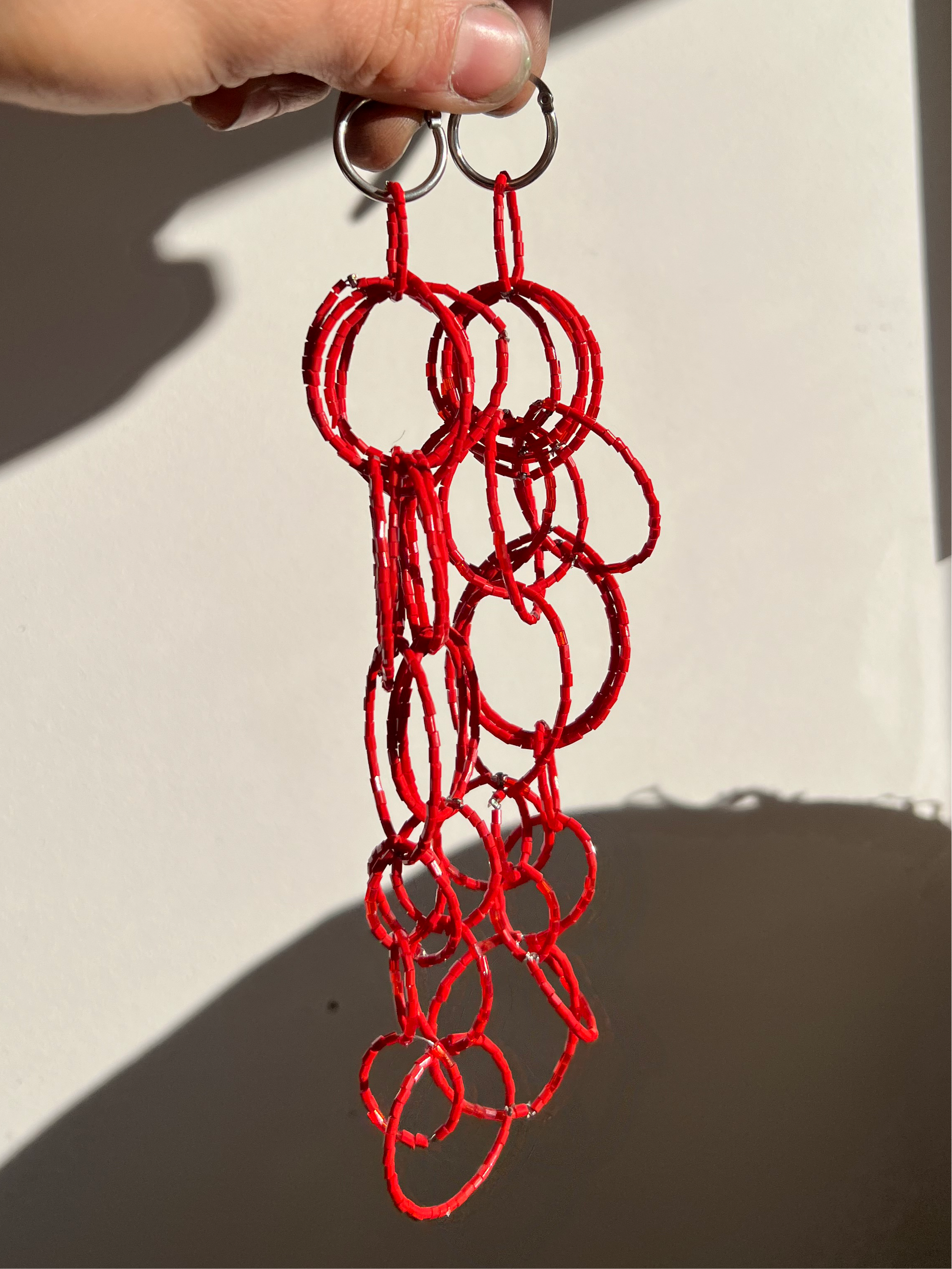 Caravanas hechas a mano con canutillos y aritos en acero, los aritos pueden ser en dorado o en plateado. Se pueden hacer en el color que más te gusten, consúltanos por opciones! También podemos hacerlas más cortas