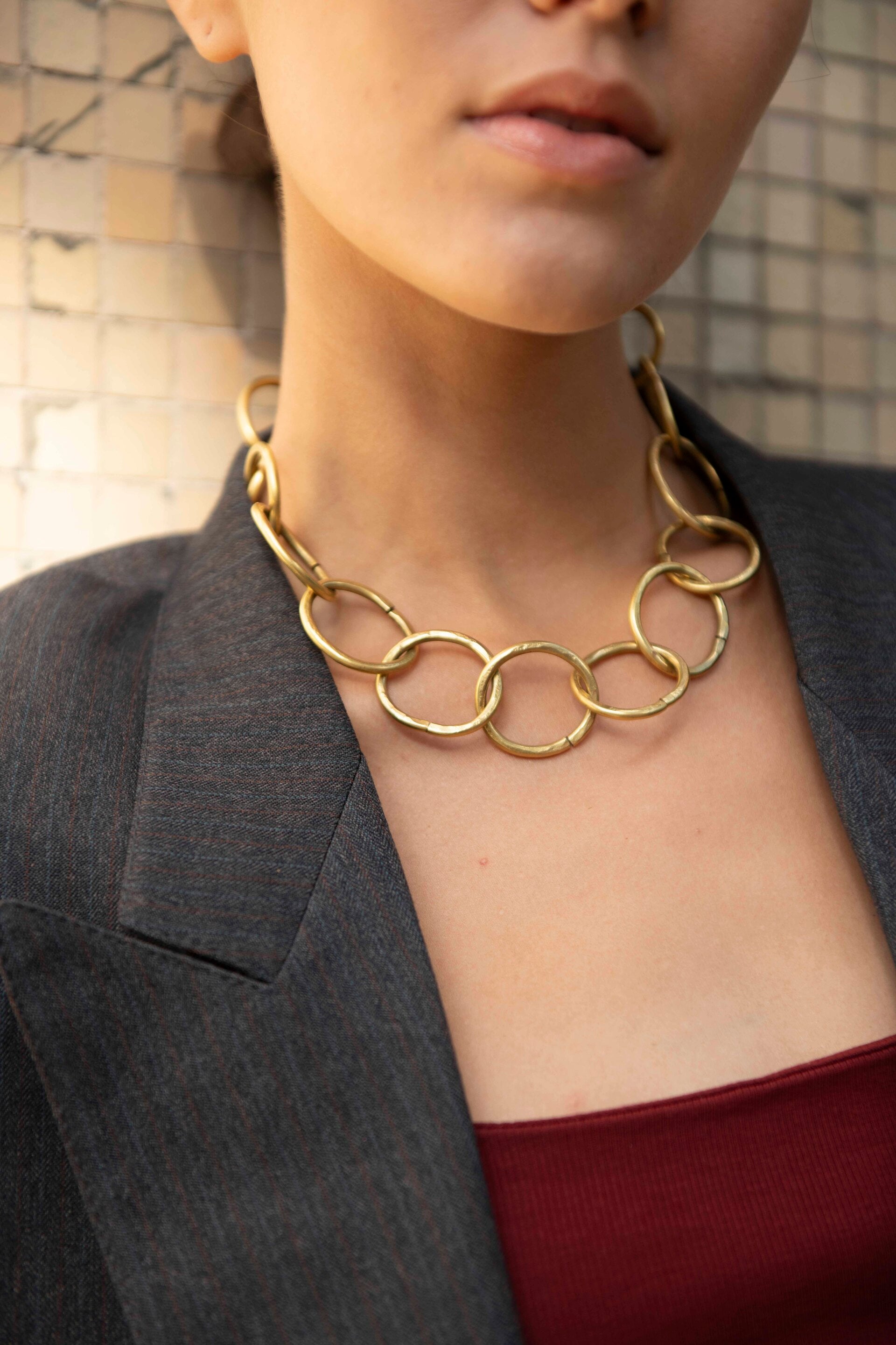 Cadena hecha a mano en bronce, largo total 50 cm, cierre en bronce.