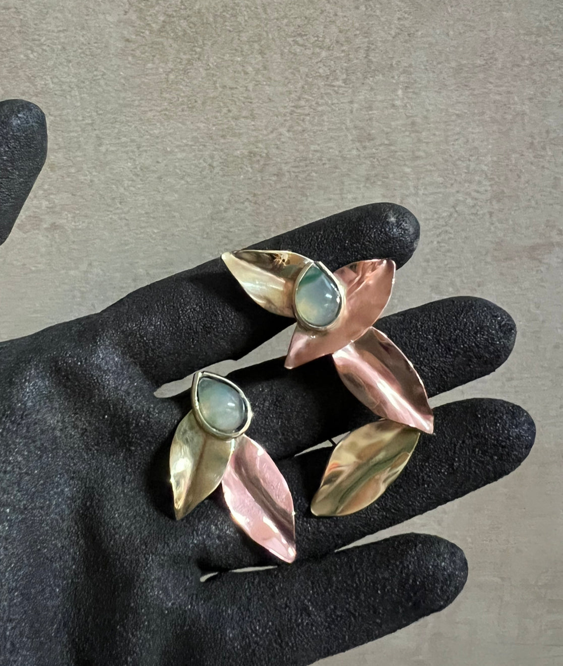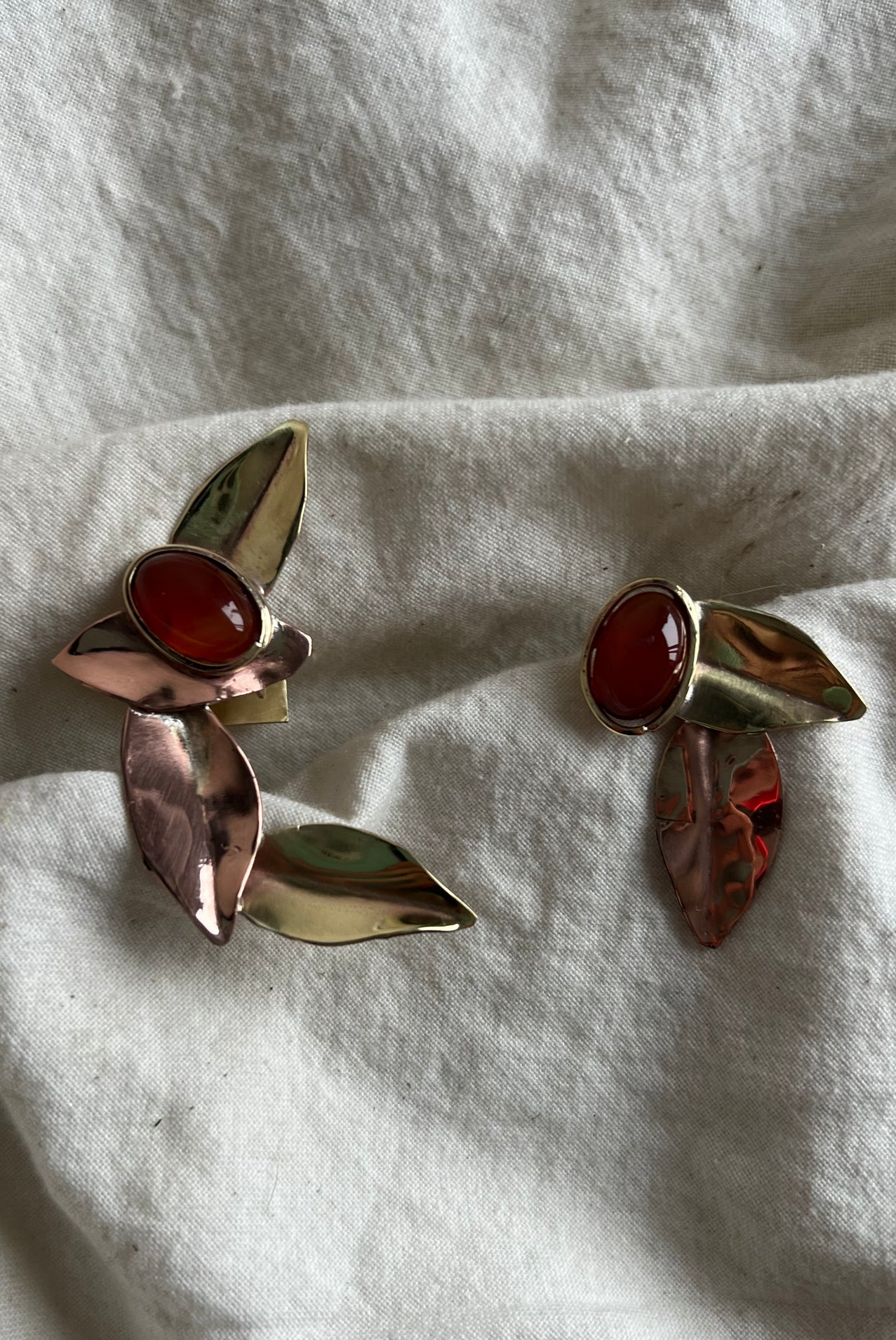 Trepadora y caravana hecha a mano en bronce y cobre, la trepadora puede ser para la oreja izquierda o derecha. El color de la ágata es a elección, pueden enviarnos mensaje para que les pasemos foto de las piedras disponibles.